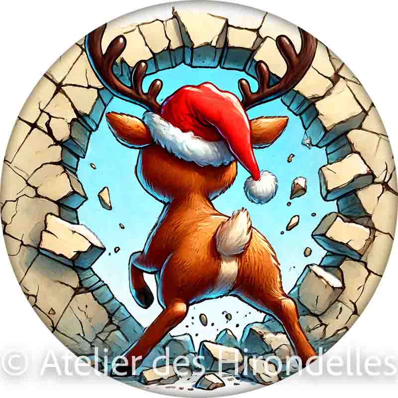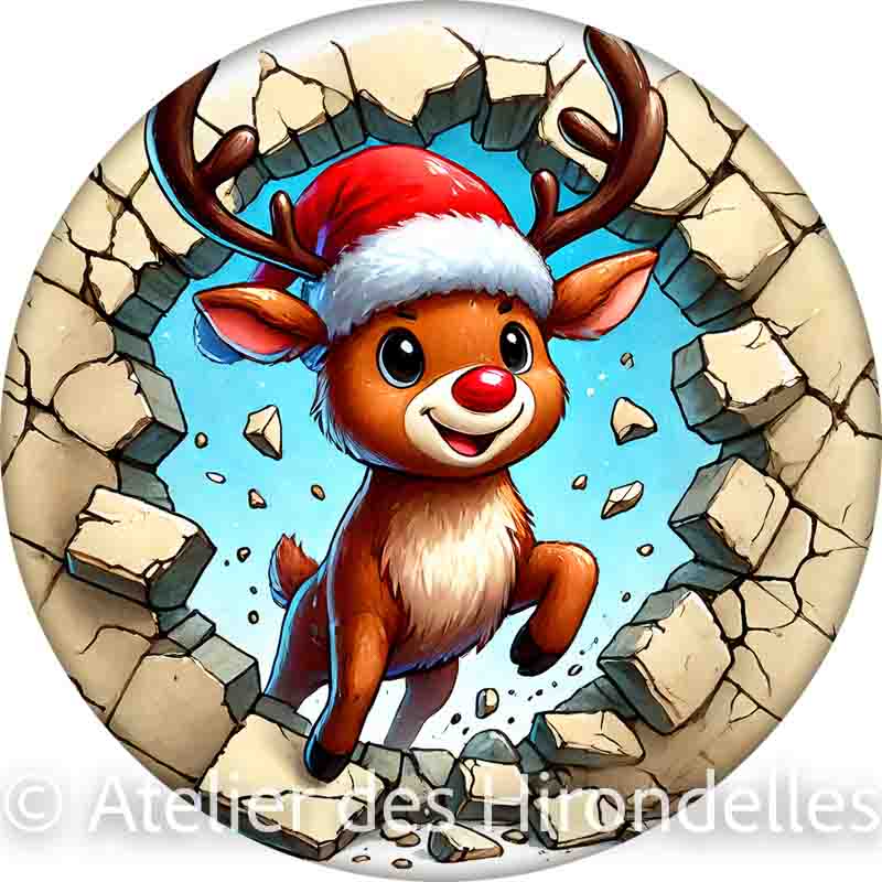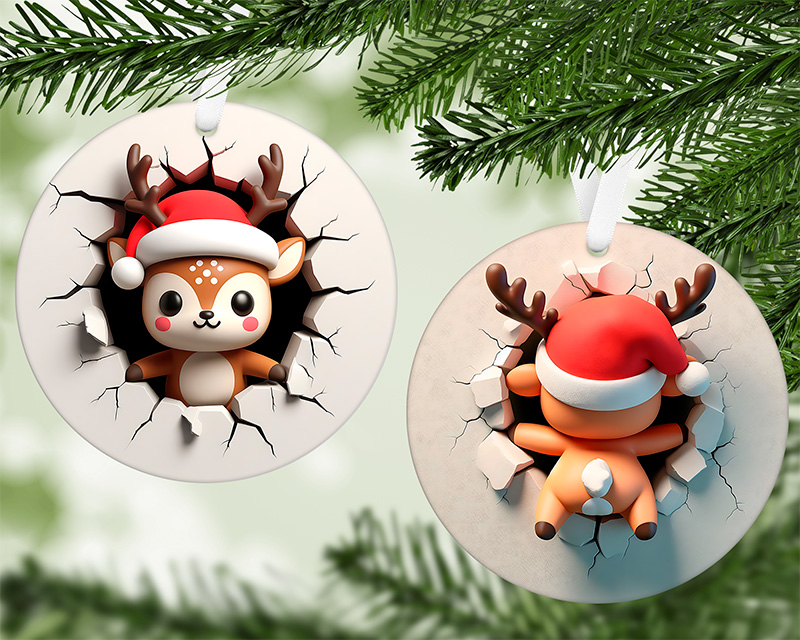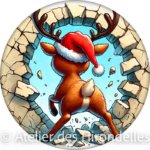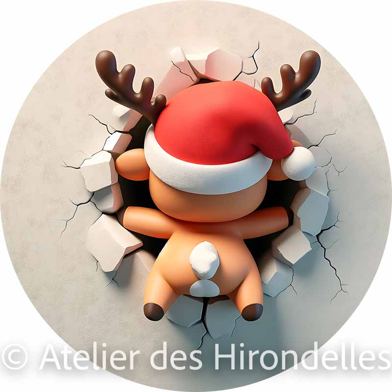 • Recto-Verso Amusant : Le visuel montre le petit renne de face d’un côté et sa petite queue toute mignonne de l’autre, renforçant l’illusion qu’il traverse l’ornement !