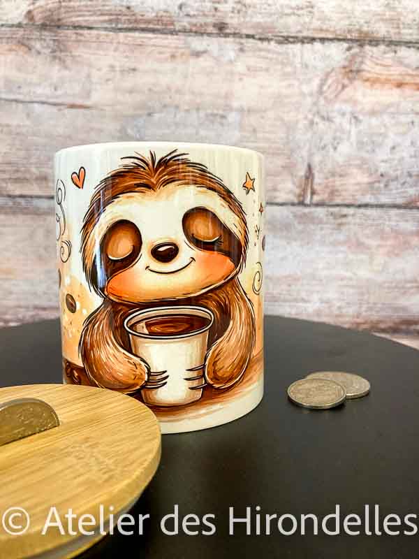 Chez moi, chaque impression est une aventure ! Pour celle-ci, les réglages ont décidé de faire du zèle : le dessin recouvre une plus grande partie de la tirelire et les teintes sont plus foncées. Un modèle vraiment unique pour les amateurs de contrastes marqués.
